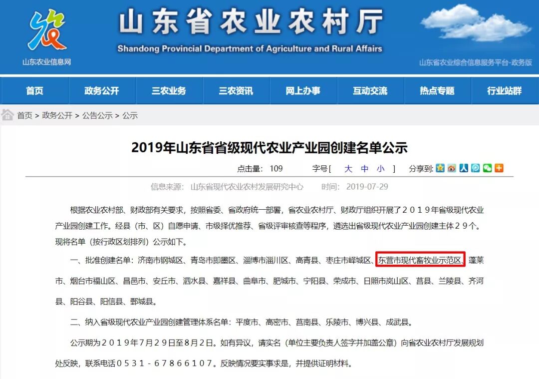 2019年8月12日,山东省农业农村厅、财政厅公布批准了23个县(市)创建省级现代农业产业园,其中,山东省农业科技园区规划设计工程技术研究中心、临沂大学农业规划团队规划设计的山东正大(东营)现代农业产业园成功获批。